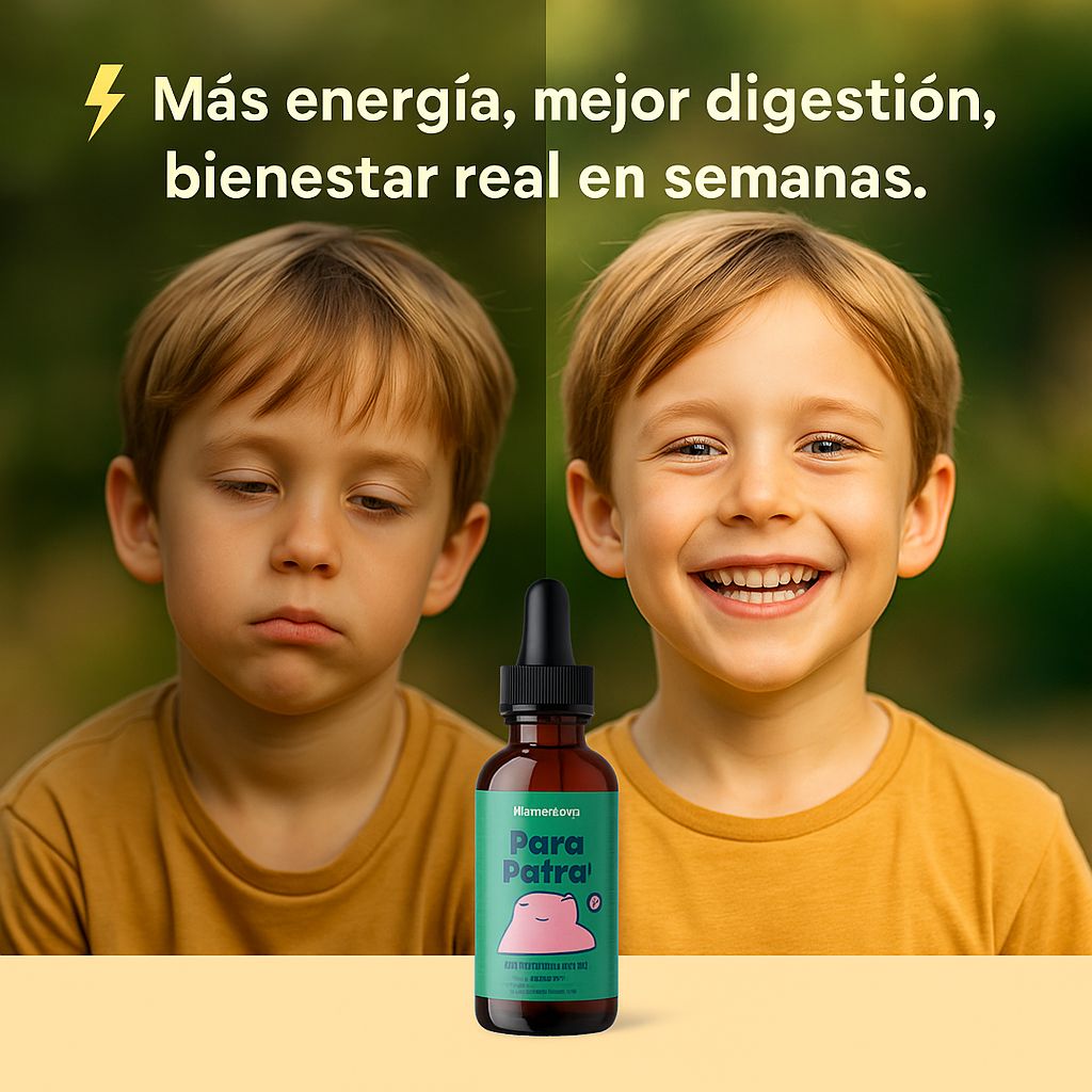 Ayuda a eliminar parásitos, toxinas y bacterias dañinas, mejorando la digestión, el apetito y el bienestar general. Es ideal para niños y adultos, especialmente cuando hay hinchazón, falta de energía, mal aliento o dificultad para dormir.
